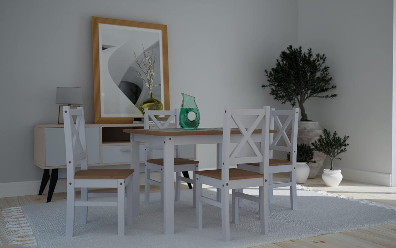 Seconique Salvador 1plus4 Tile Top Dining Set White Wood 4 Seater Amazon Co Uk Home Kitchen